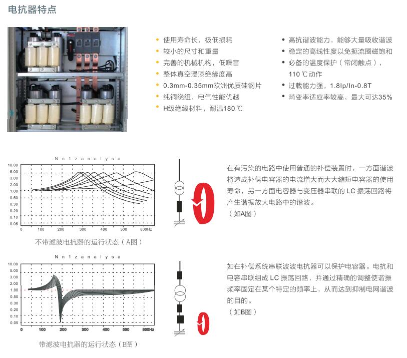 能源是人类前进的动力,电能是现在能源的主力军,我们的目标是有效的使用它,通过LC 降低无功电流有助于节约电能。现在电子设备的大量使用所产生的非线性电流,正以谐波的方式影响着电网的用电质量,这些谐波对电网的污染导致变压器,电容器产生共振,使断路器等输配电的元器件损坏和误动作,对测量和控制系统的干扰,对计算机和电动传置的干扰,还可导致谐振电压畸变,这些谐波危害现象在无功补偿系统中可以通过串联电抗器有效的改善或避免,调谐电抗电容器组的调谐频率必须低于系统内存在的主要低阶谐波频率,如此在基波频率(50Hz)可补偿无功功率,且没有谐波共振的危险。